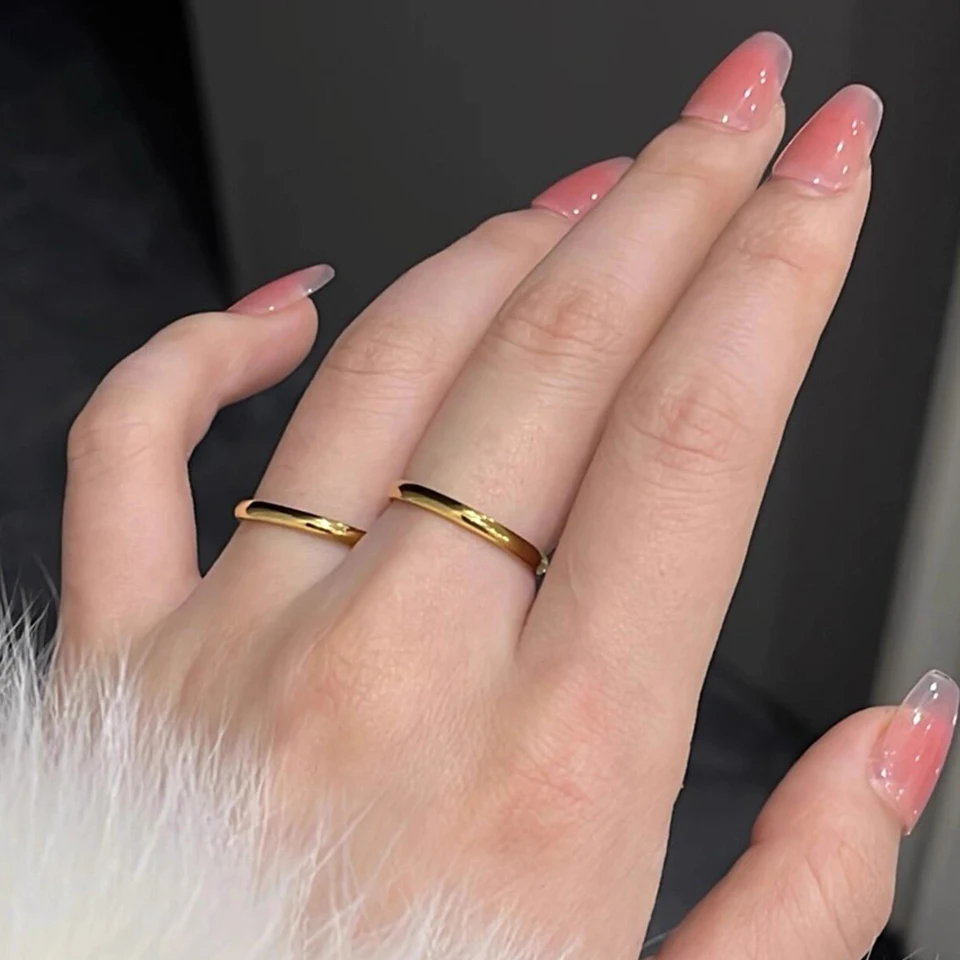 Sleek, modern, and effortlessly stylish, this ring is crafted from durable stainless steel and finished with a refined layer of 18K gold plating for a radiant, lasting shine. Its slim 2mm band and smooth, geometric design create a clean and contemporary look that feels both lightweight and comfortable for everyday wear. Designed with simplicity in mind, it offers a polished finish that complements any outfit without overwhelming your style.